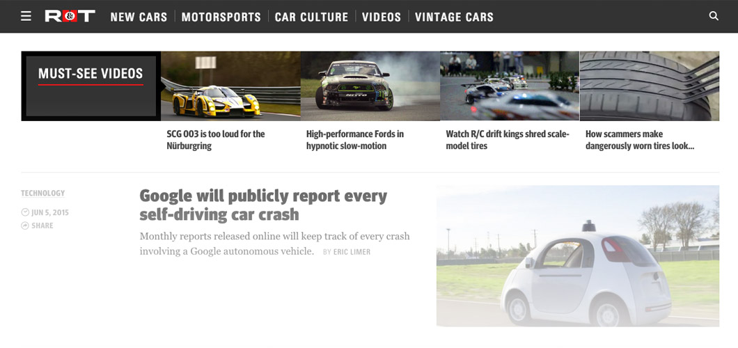 Road and Track conveniently reveals more from the section you’re in at the end of each article. This feels more natural than having to navigate “back” to see more of the same types of content.