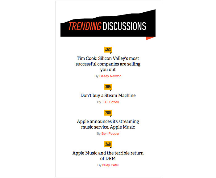 What better way to encourage people to join the conversation than creating a panel that shows which topics are hot? I can dig it, The Verge.