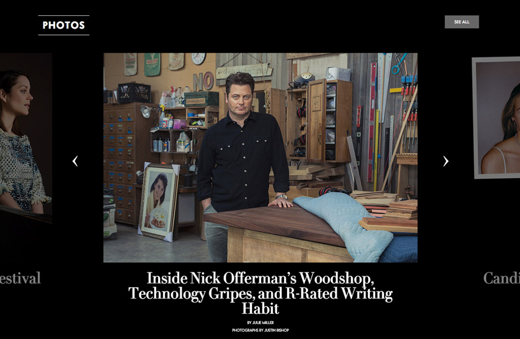Vanity Fair lets their photos do the talking by letting you browse their stories in an immersive slideshow of images.